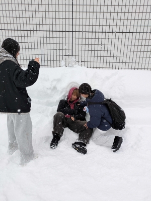 学生たちはアイデアを出し合いながら 楽しそうに作品を作っていました。