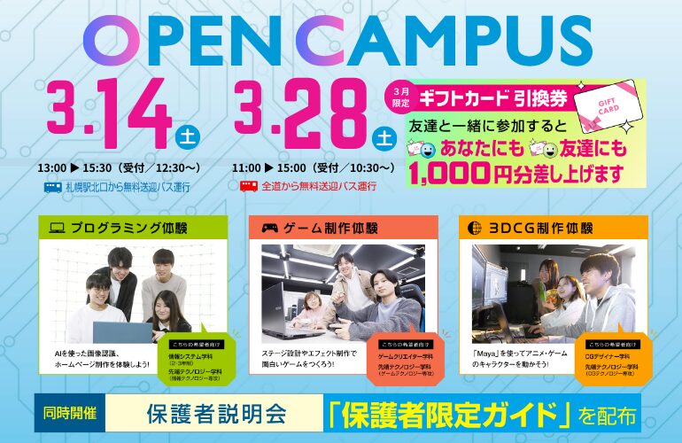 3月オープンキャンパスに友達と一緒に参加すると👉 あなたも友達も🎁ギフトカードGET!